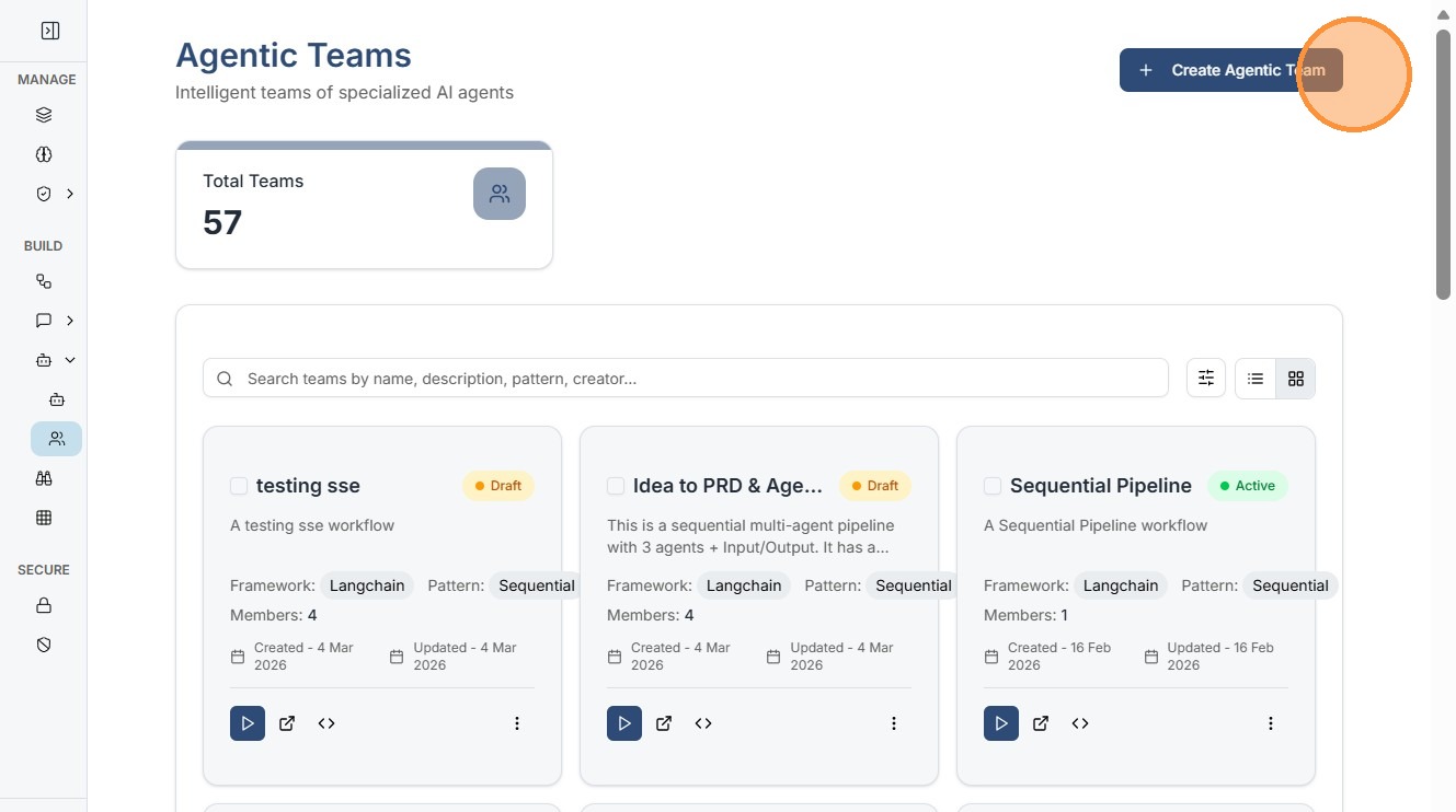Click "Create Agentic Team"