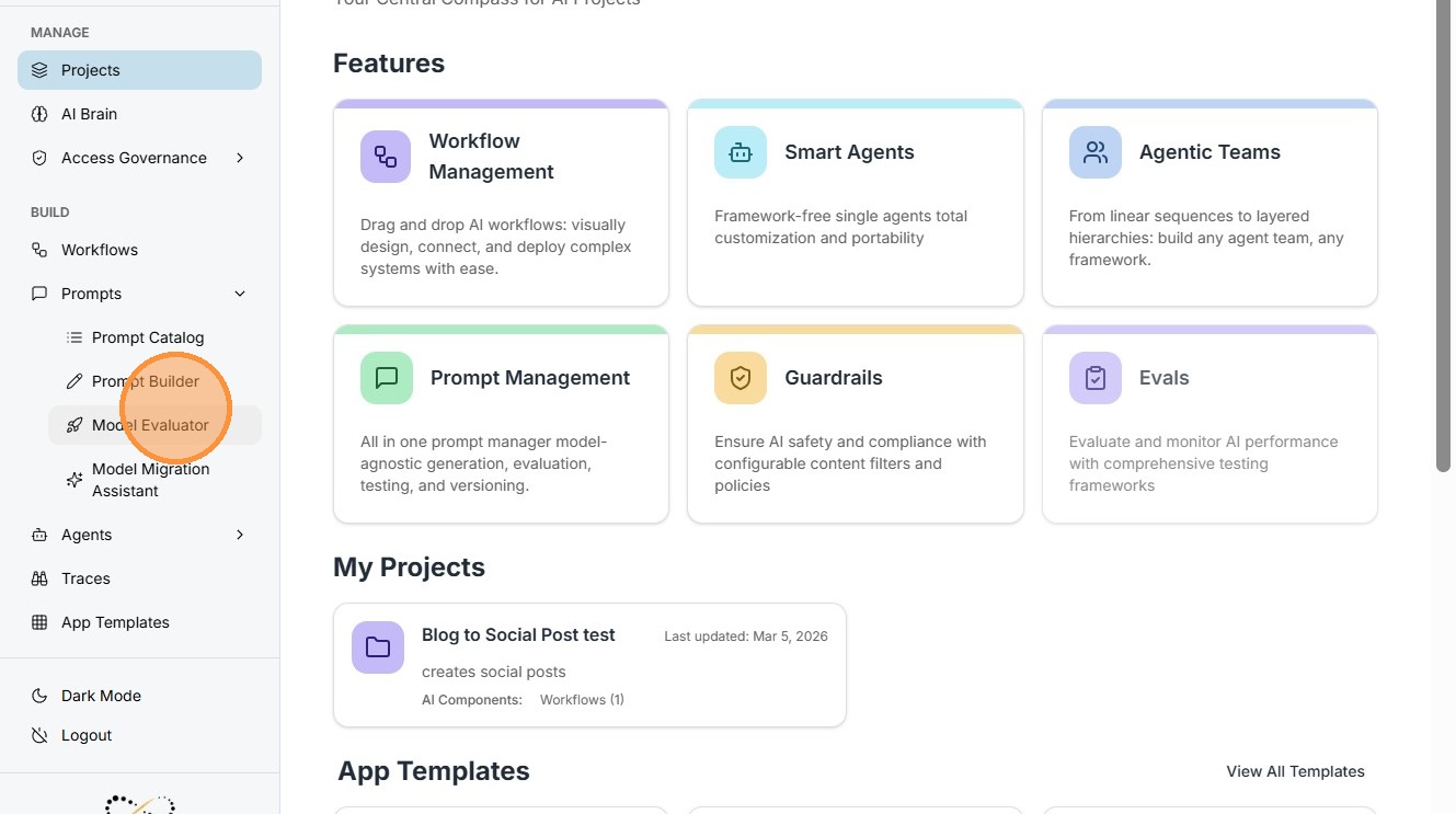 Navigation "Prompts" ->"Model Evaluator"