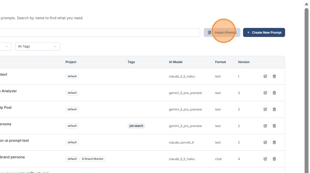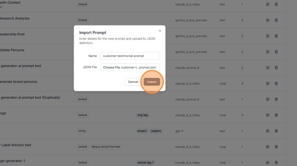 Step 1: Click Import Prompt