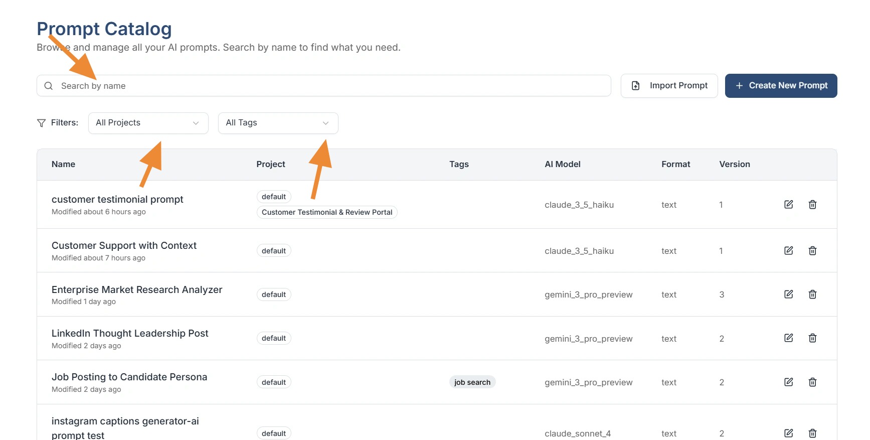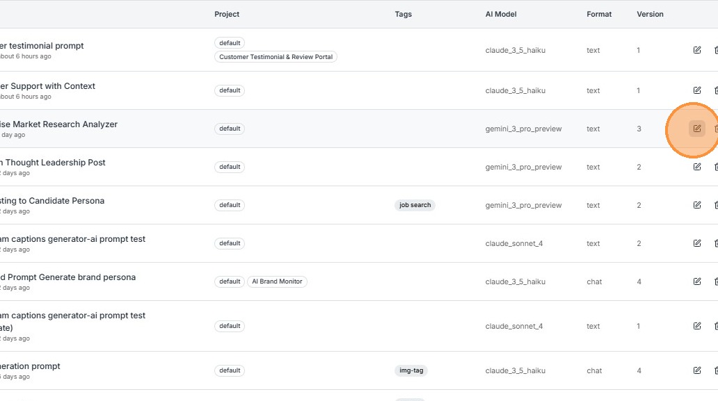 This view helps users quickly understand which prompts exist and when they were last updated.
