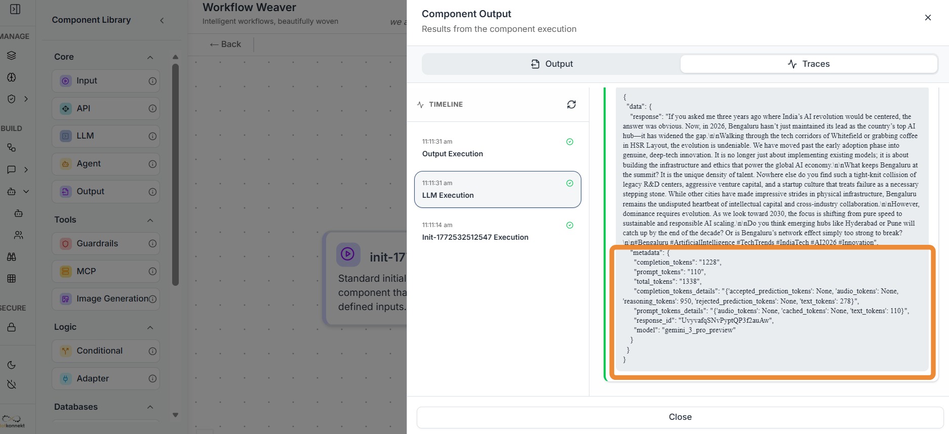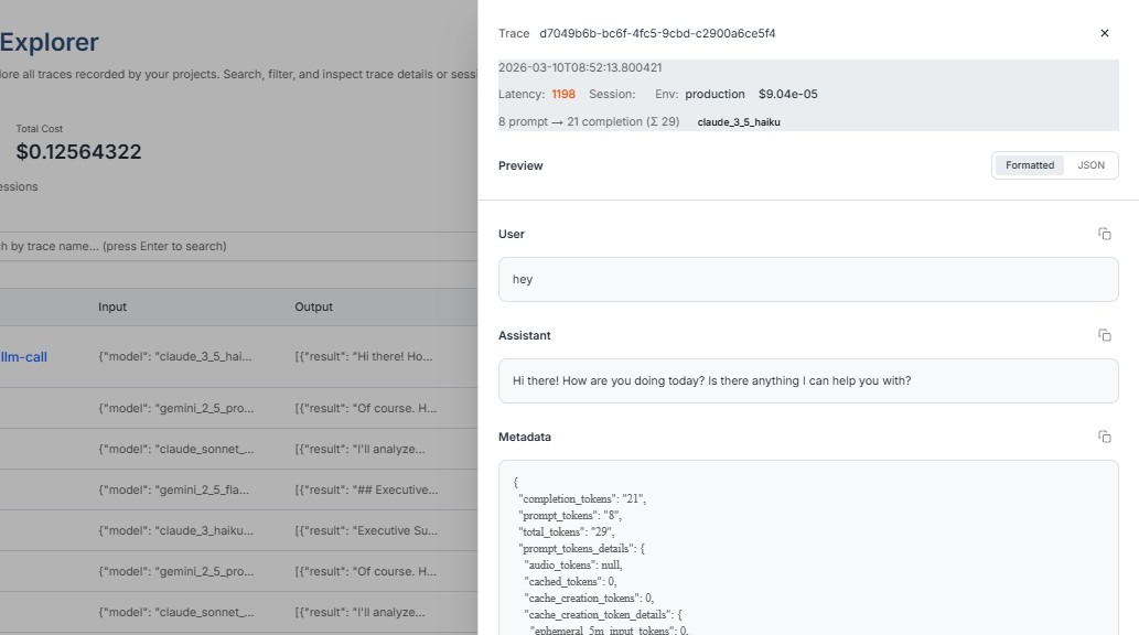 Trace metadata provides the context required to understand how an AI request was processed. While the AI response shows the final output, metadata explains how the system arrived at that output.