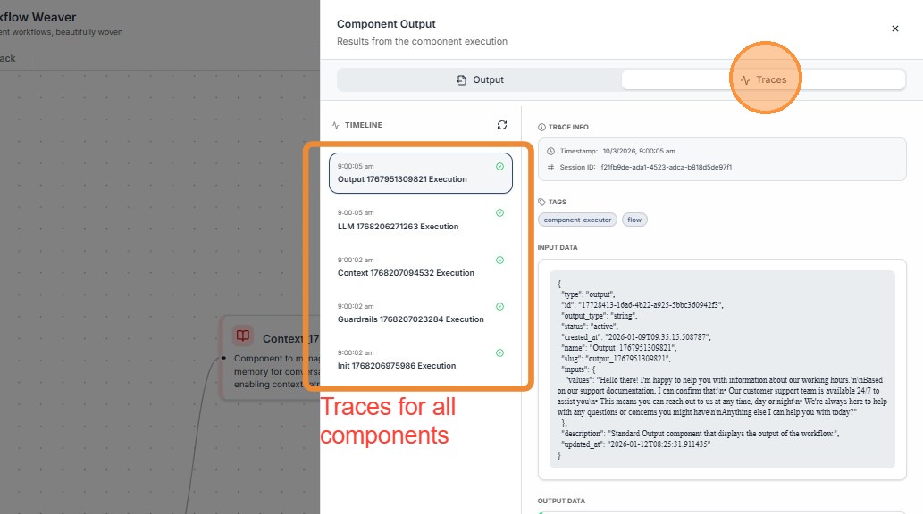 Workflow traces show how the entire AI workflow executed.