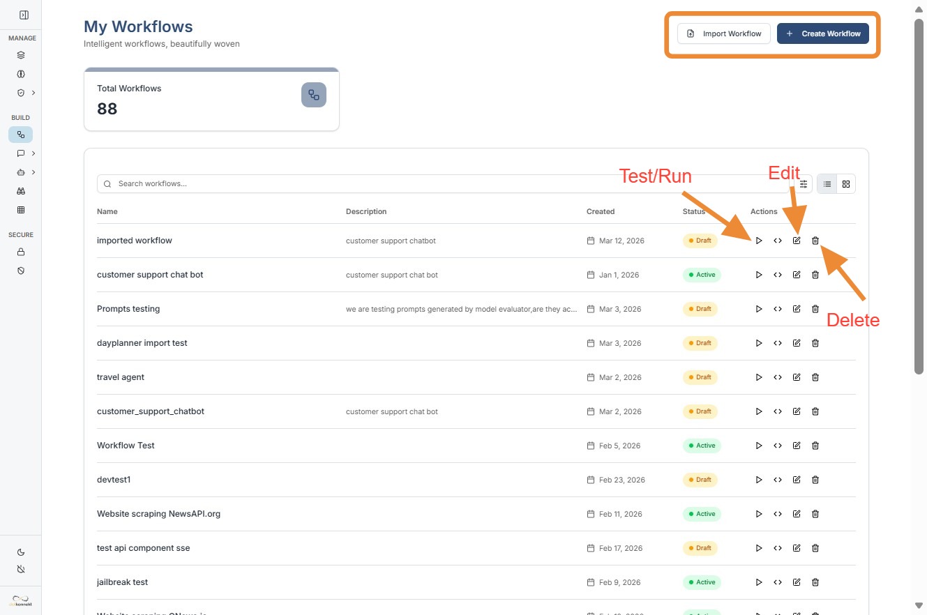 Total Workflow Count: A dedicated counter displays the "Total Workflows" currently in your system, providing an instant metric of your workspace scale.